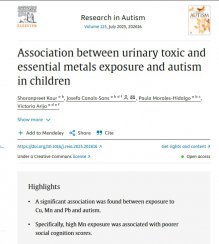 Un estudi realitzat a Espanya ha analitzat si l'exposició a determinats metalls, tant tòxics com essencials, podria tenir relació amb l'autisme en nens i nenes en edat escolar. Per fer-ho, es van recollir mostres d'orina de 108 infants (42 amb autisme i 66 sense) per mesurar la presència de 15 metalls diferents.