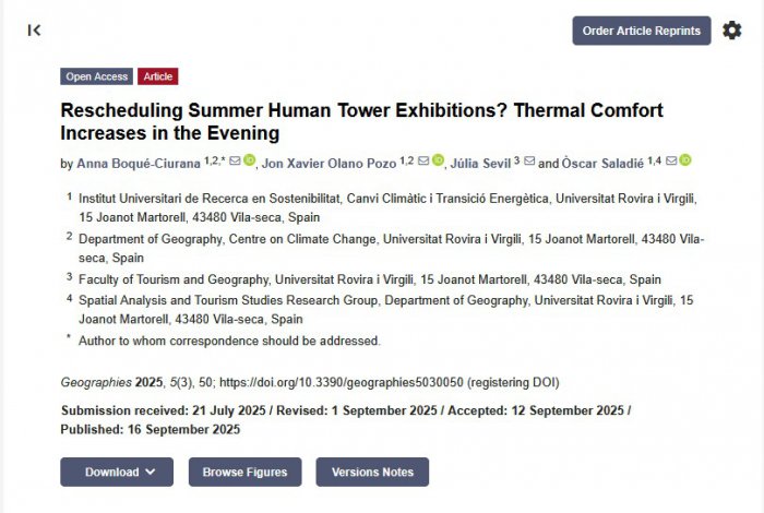 Darrera publicació "Rescheduling Summer Human Tower Exhibitions? Thermal Comfort Increases in the Evening "