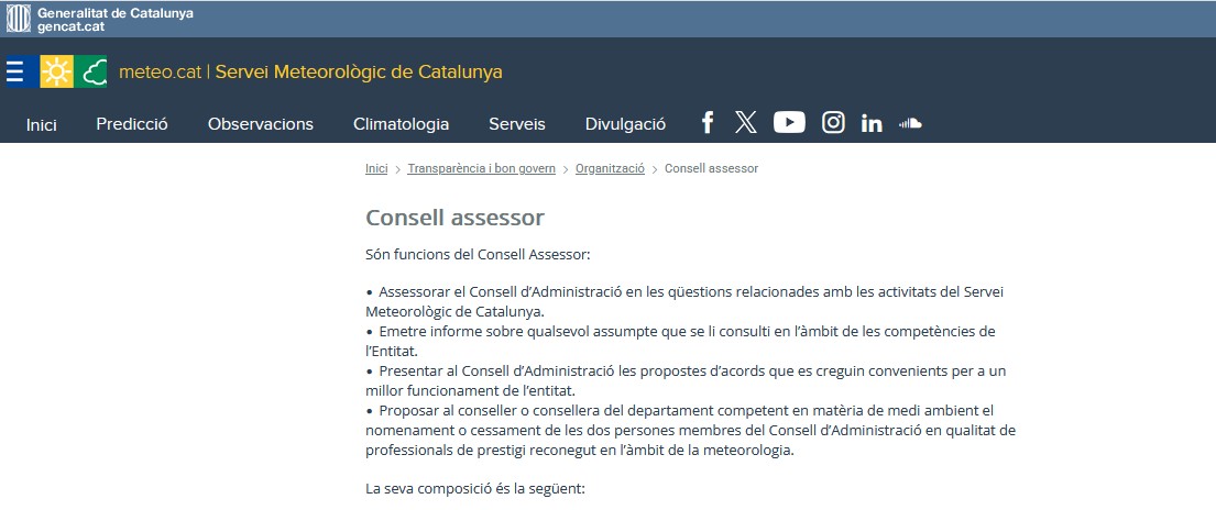 La Junta del Consell Interuniversitari de Catalunya, en data 27 d'octubre de 2025, ha acordat la designació del director de l’IU-RESCAT, Enric Aguilar, com a vocal en representació del sistema universitari de Catalunya, al Consell Assessor del Servei Meteorològic de Catalunya.