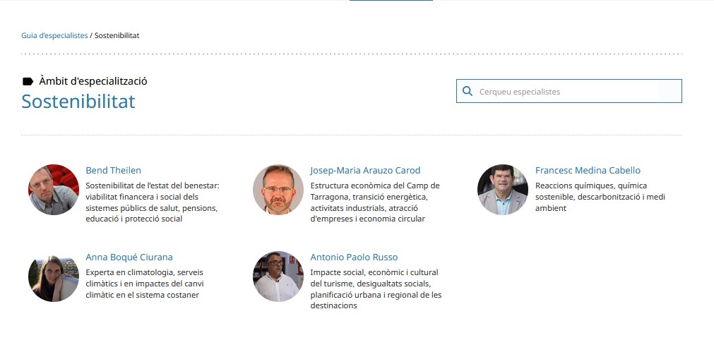 Consulteu la guia d'especialistes de la URV. Els investigadors i investigadores de la URV poden oferir context i anàlisi sobre fets d'actualitat i temes periodístics de profunditat. L’IU-RESCAT hi és i els nostres membres us poden ajudar.