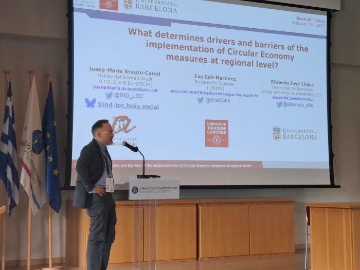 En concret, el títol de la intervenció de Josep-Maria Arauzo-Carod ha estat "WHAT DETERMINES DRIVERS AND BARRIERS OF THE IMPLEMENTATION OF CIRCULAR ECONOMY MEASURES AT REGIONAL LEVEL?" i ha dissertat sobre els factors regionals que dificulten o frenen les decisions d'adopcions de mesures d'economia circular per part de les empreses.