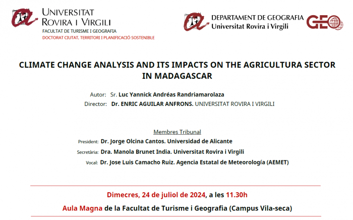 El Dr. Randriamarolaza va ser estudiant de doctorat a la URV. El passat 24 de juliol va defensar la seva tesi doctoral titulada "Climate Change analysis and its impacts on the agriculture sector in Madagascar".