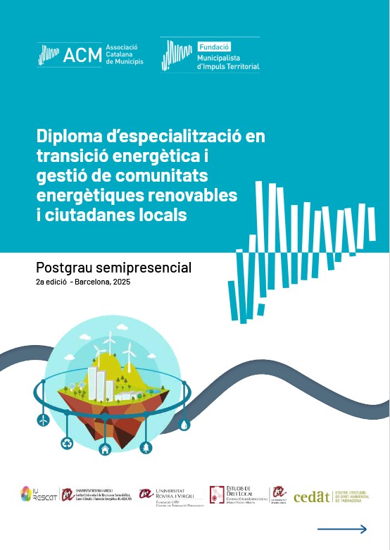 El Diploma d'especialització en transició energètica i gestió de comunitats energètiques renovables i ciutadanes locals és un programa pioner de formació superior universitària semipresencial que abasta completament les diverses disciplines que capaciten per al disseny i la implementació d'iniciatives de transició energètica basades en comunitats energètiques renovables i ciutadanes locals, en el marc de la normativa aplicable a Catalunya.