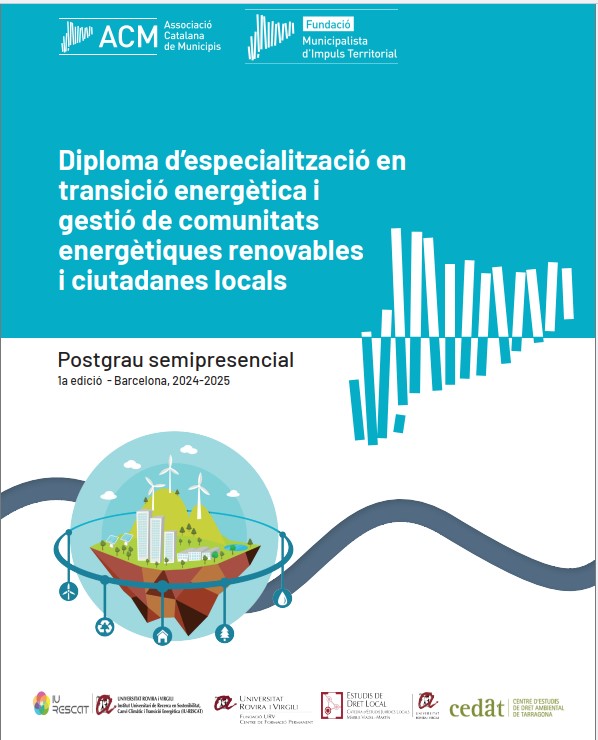 Este diploma de especialización es un título universitario de postgrado otorgado a la Universitat Rovira i Virgili (URV), organizado mediante el Instituto Universitario de Investigación en Sostenibilidad, Cambio Climático y Transición Energética (IU-RESCAT), la Cátedra de Estudios Jurídicos Locales Màrius Viadel i Martín, el Centro de Estudios de Derecho Ambiental (CEDAT) y el Centro de Formación Permanente de la Fundació URV (CFP-FURV), con la colaboración de la Cátedra Enric Prat de la Riba de Estudios Jurídicos Locales de la Universitat Autònoma de Barcelona (UAB), por encargo en concurrencia competitiva de la Fundació Municipalista d’Impuls Territorial (FMIT) de la Associació Catalana de Municipis i Comarques (ACM), con el objectivo de formar personal de gestión, técnico y directivo del ámbito de la sostenibilidad, el cambio climático y la transición energética en el conjunto de Cataluña.